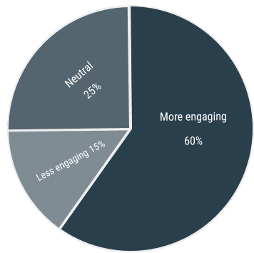 60% found embedded AI more engaging, 25% neutral, 15% less engaging