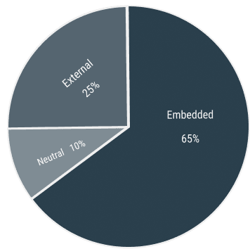 65% preferred embedded patterns, 25% preferred external docs, 10% neutral