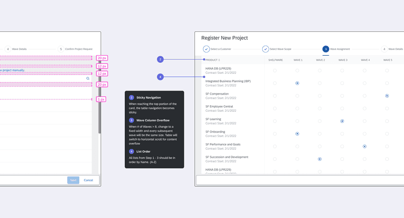 Focus AreaGoalProject InitiationLet partners register projects easily from within SAP for MeProduct & Wave PlanningHelp users assign products to multi-phase delivery wavesDependency HandlingBuild error-proofing logic across steps for better user confidence